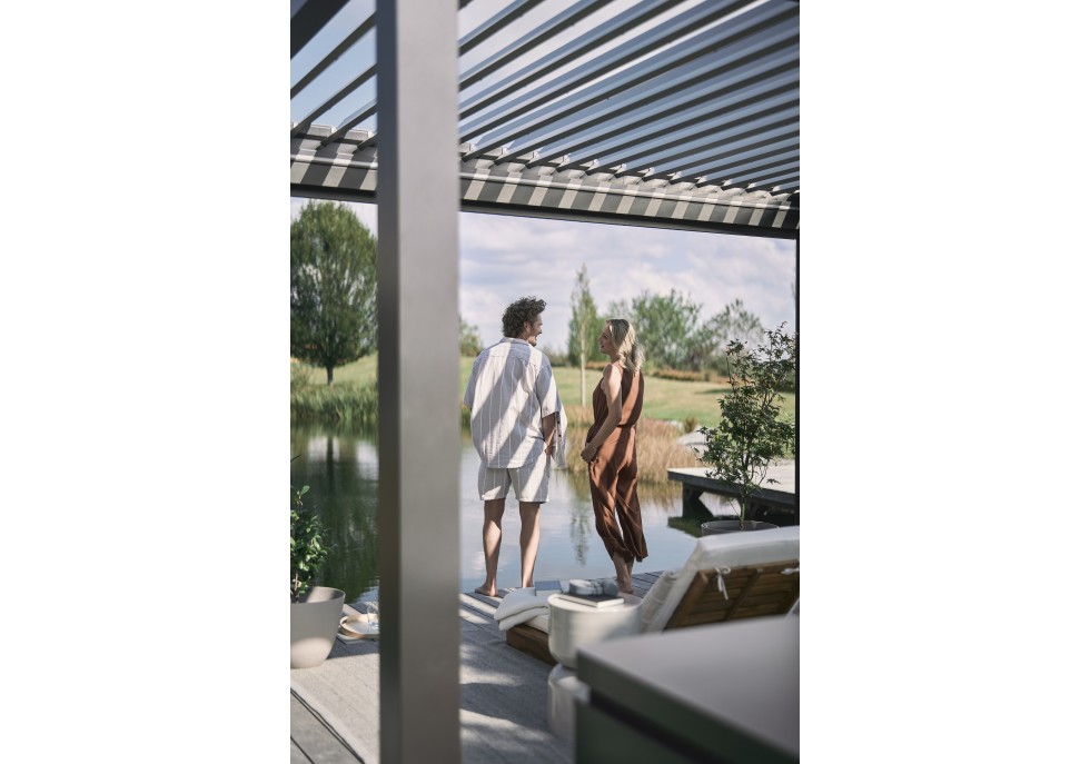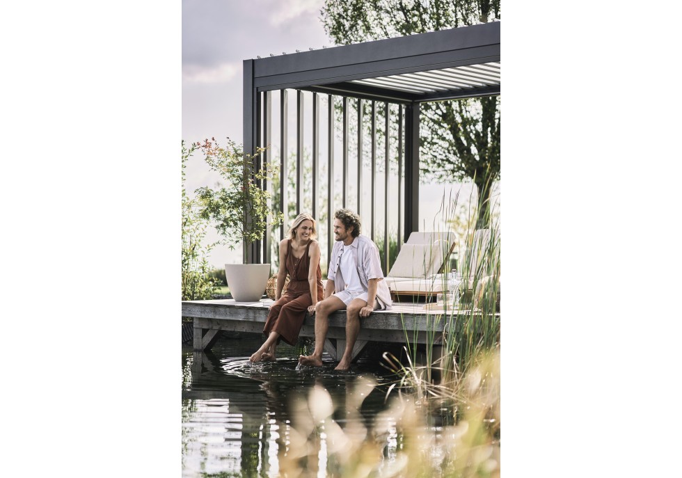 Pergola metalowa premium marki Biohort z regulowanym dachem lamelowym i wyjątkową estetyką. Zapewnia cień, przewiew, komfort w każdych warunkach pogodowych, a możliwość personalizacji sprawia, że idealnie wpisuje się w nowoczesne projekty ogrodów. Świetna jakość i technologia w jednym produkcie. Gotowa do montażu oświetlenia LED i sterowania elektrycznego.
