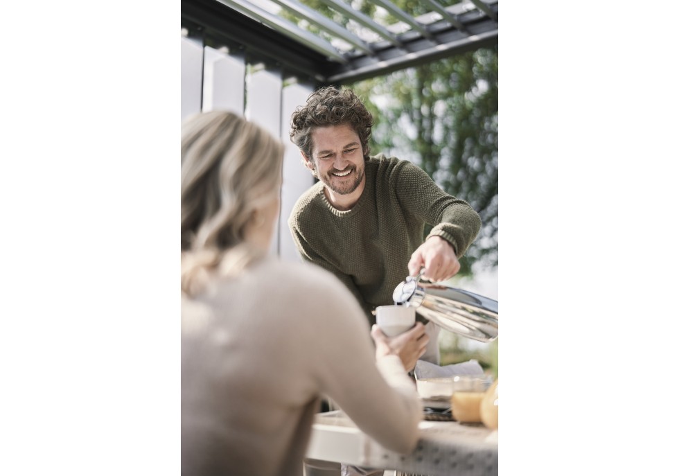Pergola ogrodowa Biohort z regulowanymi lamelami to odpowiedź na potrzeby nowoczesnych użytkowników. Pergola oferuje wysoką jakość wykonania, potwierdzoną 20-letnią gwarancją. Zadaszenie wyposażone w innowacyjną konstrukcję lameli redukuje ciepło i hałas, oferując jednocześnie wysoką estetykę i trwałość. Ręczna regulacja do 130° umożliwia precyzyjne dopasowanie zacienienia, a ukryty system odwodnienia skutecznie odprowadza deszczówkę. Produkt przygotowany jest pod rozbudowę o elektryczny napęd, LED-y oraz sterowanie pilotem. Występuje w dwóch eleganckich wariantach kolorystycznych oraz w wersji dwukolorowej z kontrastowymi lamelami dachowymi.