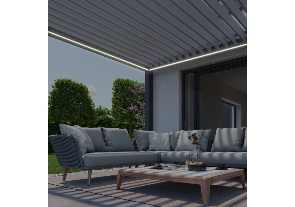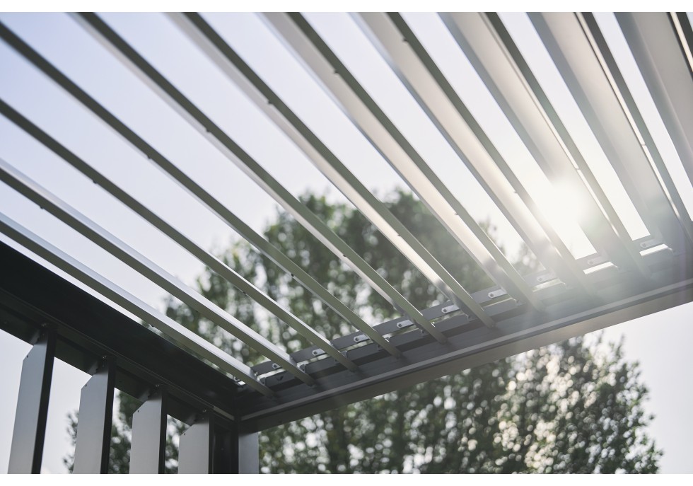 Pergola metalowa premium marki Biohort z regulowanym dachem lamelowym i wyjątkową estetyką. Zapewnia cień, przewiew, komfort w każdych warunkach pogodowych, a możliwość personalizacji sprawia, że idealnie wpisuje się w nowoczesne projekty ogrodów. Świetna jakość i technologia w jednym produkcie. Gotowa do montażu oświetlenia LED i sterowania elektrycznego.
