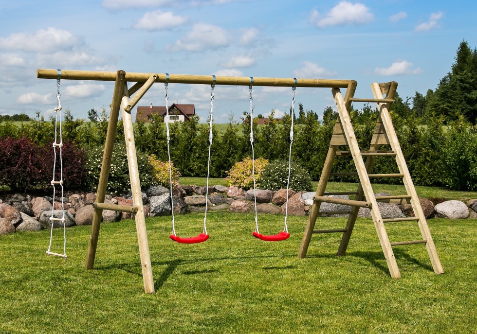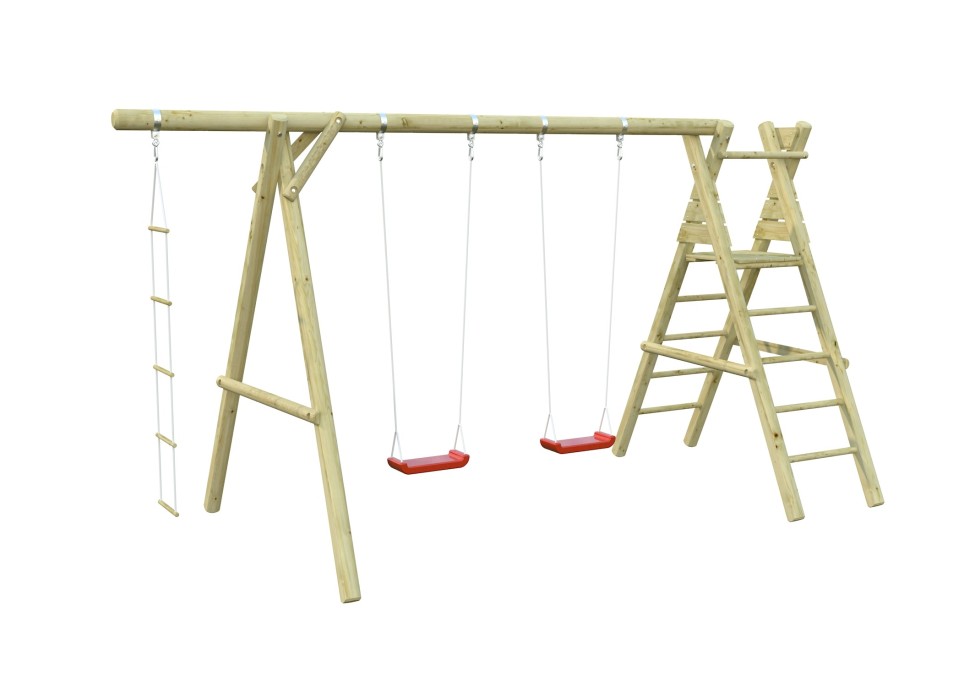Huśtawka ogrodowa HENRY wykonana ze świerku skandynawskiego oferuje dwa siedziska, drabinkę linową oraz boczną konstrukcję do wspinania. Fabrycznie impregnowana ciśnieniowo, trwała i stabilna – idealna do codziennej zabawy w ogrodzie.