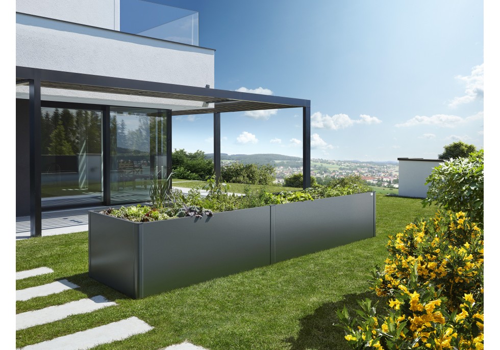 Biohort HochBeet to nowoczesna grządka podwyższona wykonana z ocynkowanej, malowanej proszkowo stali, idealna do uprawy warzyw i ziół przez cały sezon. Minimalistyczna forma, szybki montaż bez śrub, zintegrowana ochrona przed gryzoniami oraz przygotowanie pod system nawadniania sprawiają, że pielęgnacja roślin staje się wyjątkowo wygodna. Warstwowa konstrukcja wnętrza przyspiesza nagrzewanie gleby i wzrost roślin, a jakość Biohort potwierdza długa, 20-letnia gwarancja.
