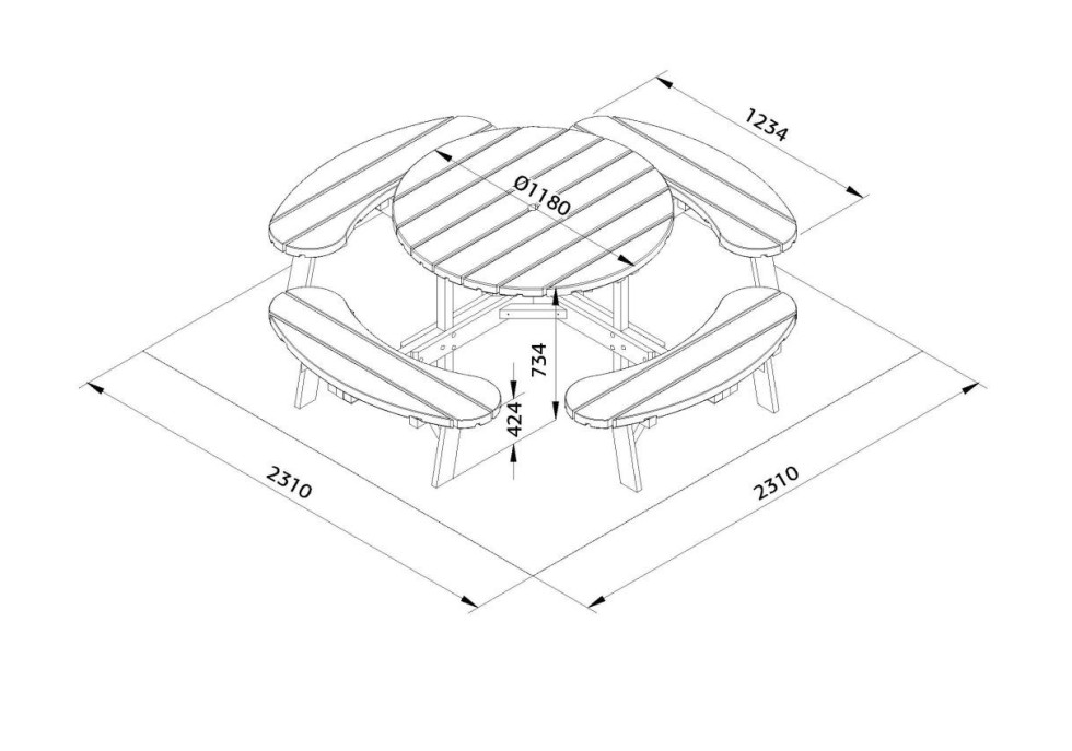 Elegancki zestaw mebli ogrodowych, który łączy styl, komfort i trwałość. Świetnie sprawdzi się na tarasie, w ogrodzie lub na patio, tworząc przytulną przestrzeń do relaksu i spotkań. Wykonany z solidnego, odpornego na warunki atmosferyczne świerka skandynawskiego, łatwy w utrzymaniu i estetyczny przez długi czas. Doskonały wybór na letni wypoczynek na świeżym powietrzu. Wymiary zestawu 231x231x73 cm