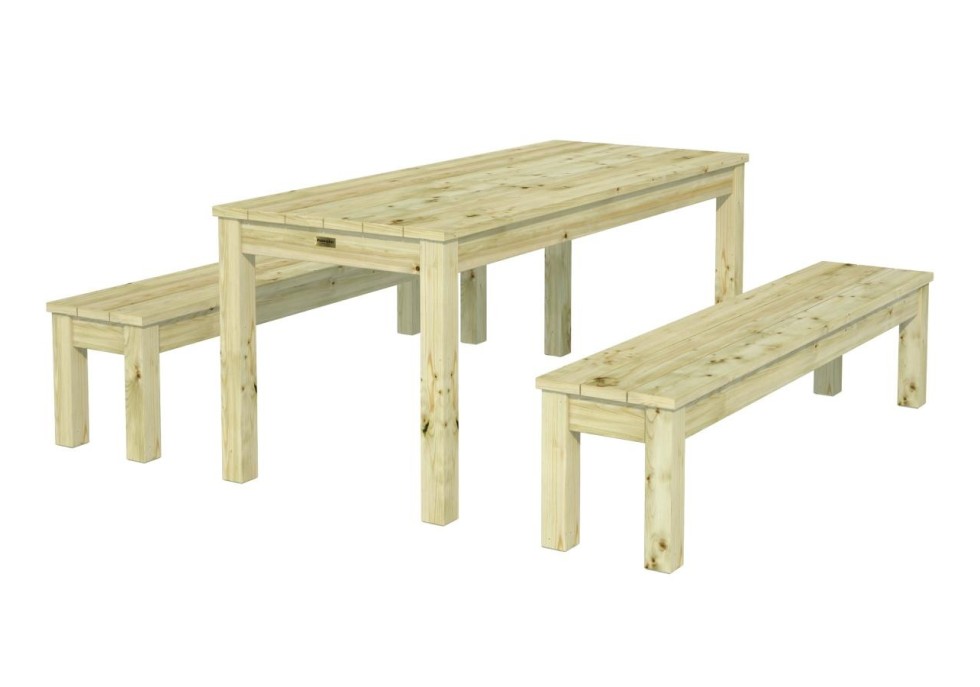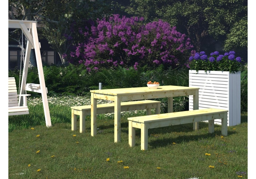 Elegancki zestaw mebli ogrodowych, który łączy styl, komfort i trwałość. Świetnie sprawdzi się na tarasie, w ogrodzie lub na patio, tworząc przytulną przestrzeń do relaksu i spotkań. Wykonany z solidnego, odpornego na warunki atmosferyczne świerka skandynawskiego, łatwy w utrzymaniu i estetyczny przez długi czas. Doskonały wybór na letni wypoczynek na świeżym powietrzu. Wymiary zestawu 180x74x75 cm