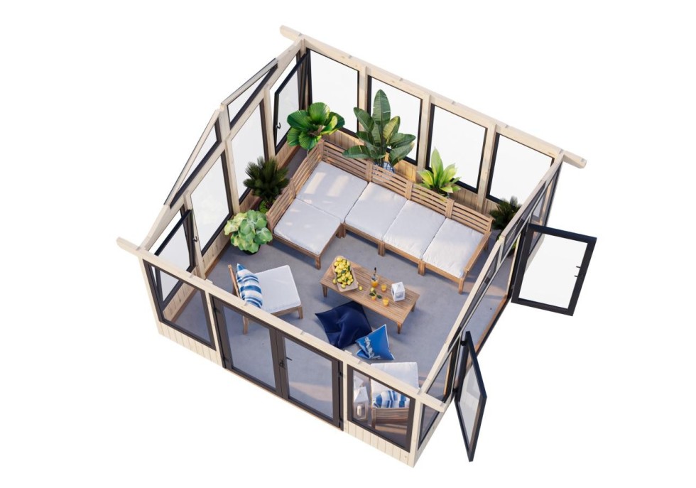 Nasza altana ogrodowa jest stylowo i nowocześnie przeszklona, dzięki czemu pozwala cieszyć się krajobrazem oraz zapewnia przyjemne schronienie przed deszczem lub wiatrem. Idealnie komponuje się z ogrodem lub z przestrzenią przy domu. Uzupełniają ją oszklone drzwi z gustowną klamką. W tej przytulnej altanie naprawdę można wygodnie wypocząć! Altana nadaje się do samodzielnego montażu dzięki prostej instrukcji. Na zlecenie Klienta montaż wykonuje nasza fachowa ekipa.