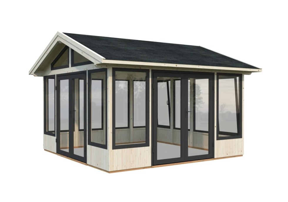Zamknięta altana ogrodowa Isabella 147 stanowi oryginalne i funkcjonalne połączenie prostoty oraz nowoczesności. Jej prosta konstrukcja została wykonana z najwyższej jakości surowca naturalnego - drewna świerkowego Nordic. Dach altany ma tradycyjną, dwuspadową formę. Na życzenie Klienta we wnętrzu może znajdować się drewniana podłoga o wybranej grubości.