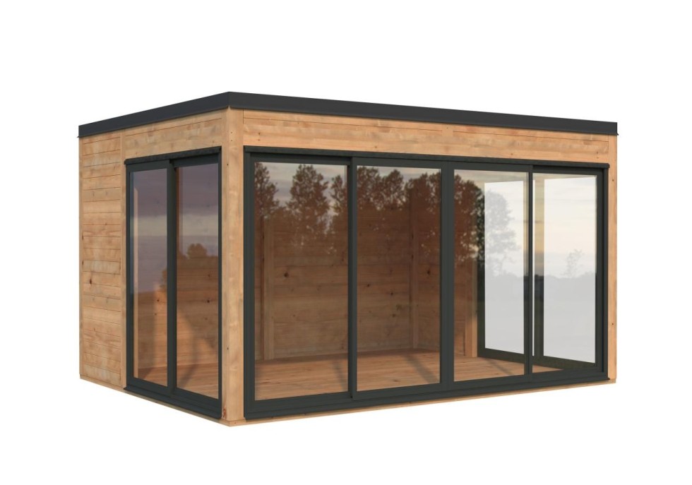 Altana nowoczesna Serena 126 zamknięta z drzwiami przesuwnymi z aluminium, to eleganckie połączenie minimalistycznej formy, funkcjonalności i bliskości natury. Przeszklone ściany zapewniają maksymalny dostęp światła dziennego oraz panoramiczny widok na ogród, jednocześnie chroniąc przed wiatrem i deszczem.